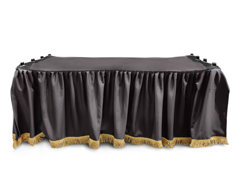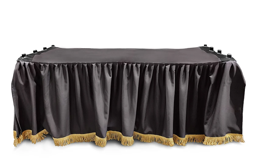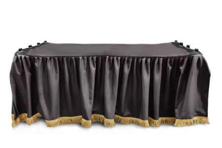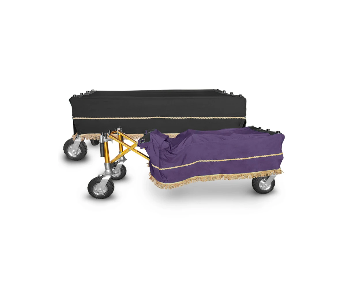 Po pierwsze, kir zapewnia estetyczne przykrycie wózka transportowego, często wykonanego z metalu lub ze stalową konstrukcją, co samo w sobie może nie być wystarczająco godne atmosfery ceremonii pogrzebowej.