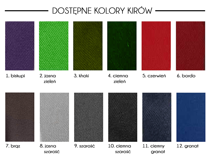 Kolorystyka i możliwość personalizacji – dla regionu Śląska, gdzie zakłady mogą mieć określoną identyfikację wizualną, możliwość wyboru koloru lub wykonania na zamówienie jest ogromnym atutem. W przykładzie podana jest możliwość wykonania kira w wybranej kolorystyce, dodatki - frędzle.