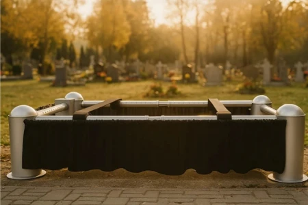 Elektryczna winda pogrzebowa to specjalistyczne urządzenie umożliwiające bezpieczne i precyzyjne opuszczanie trumny do grobu podczas ceremonii pogrzebowej.